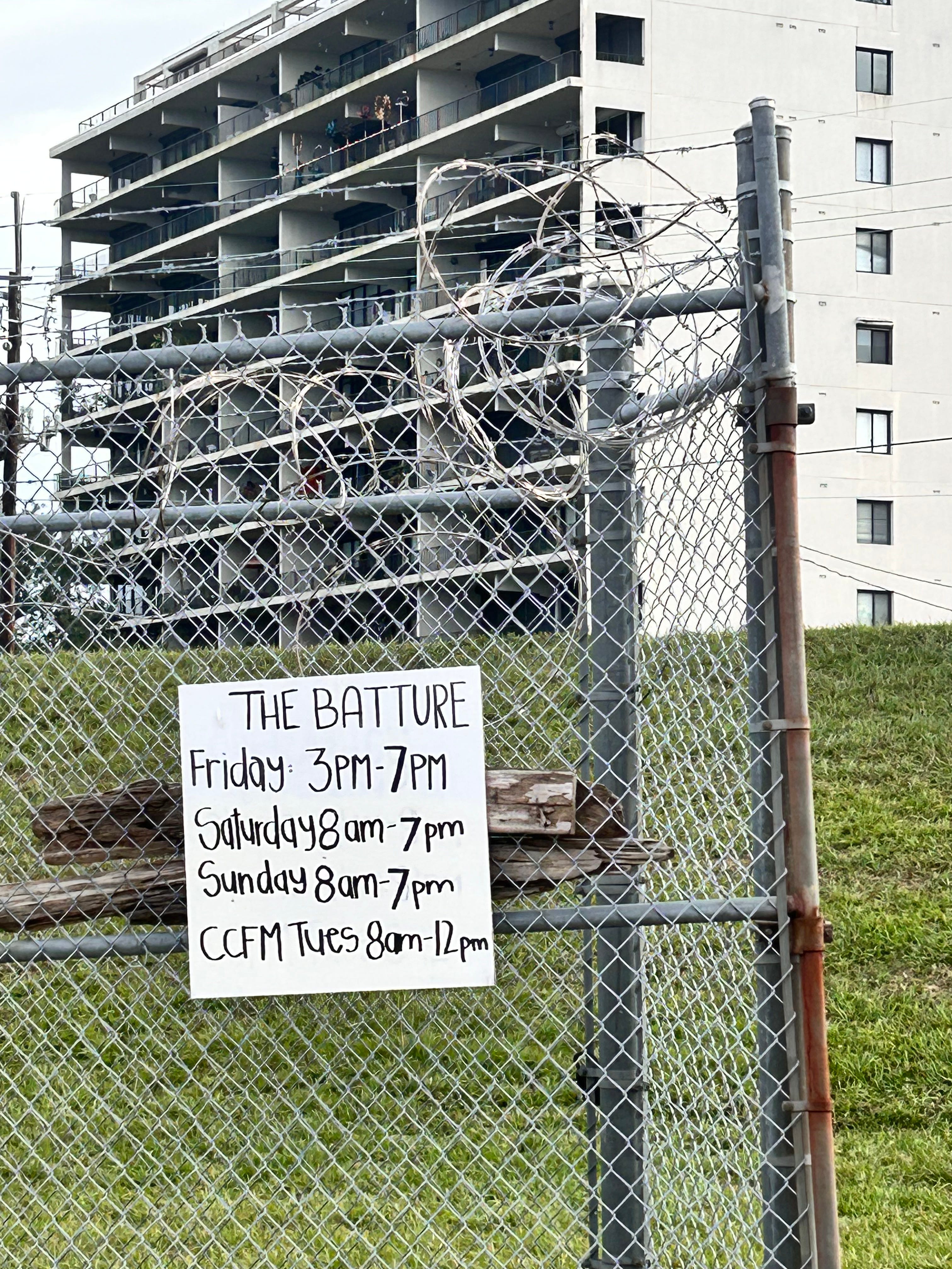 Between both banks lies the batture. If you ever want to dump a dead body, do it on the batture, where evidence disappears. It washes down to La Balise.